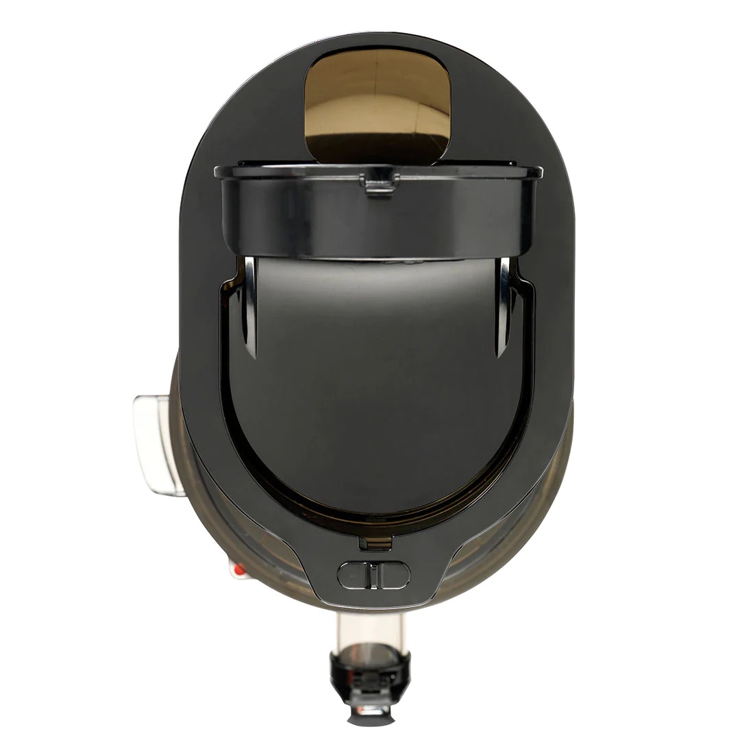 Der Chef CS600 verfügt über ein Slim Design, sodass er nur wenig Platz in der Küche einnimmt. Durch den durchsichtigen Saftbehälter und Trichter kann der Entsaftungsprozess beobachtet werden.